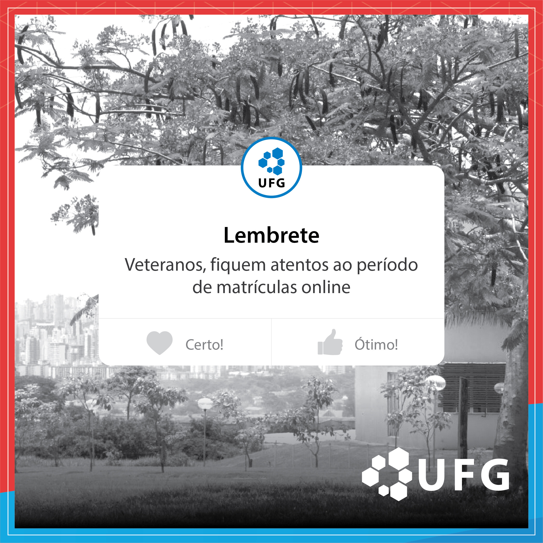 A partir da próxima semana será iniciado o período de solicitação de matrícula para os estudantes veteranos de 2021/2 da Universidade Federal de Goiás (UFG). O prazo começa na terça-feira (23/11) e termina na segunda-feira (29/11). O procedimento será feito por meio do escalonamento de ano e semestre de ingresso na Instituição. O prazo termina em 29 de novembro de 2021. Neste mesmo período, o estudante também pode solicitar trancamento de matrícula, seguindo o escalamento.