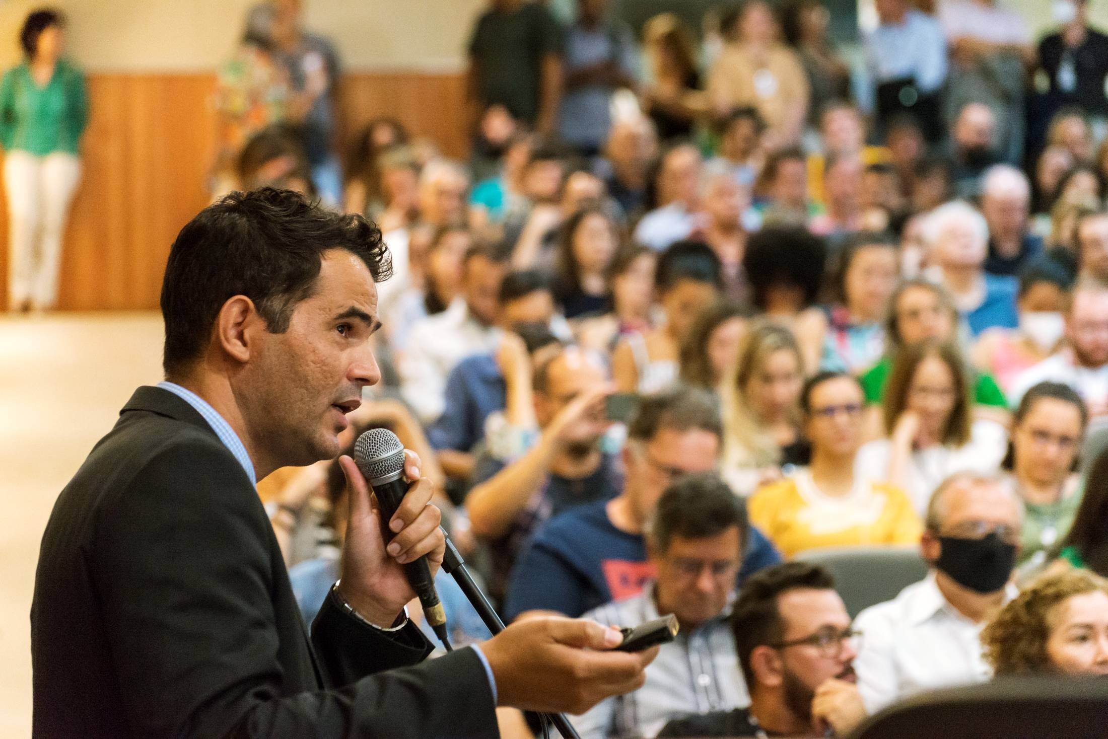 Ao final da abertura da IX Semana de Planejamento Pedagógico, o pró-reitor de Pós-Graduação da UFG, Felipe Terra Martins, reforçou o discurso de integração do ensino, da pesquisa e da extensão ao pedir que os coordenadores e professores dos cursos fomentem o interesse dos alunos na pós-graduação. Ele expõe o dado que 55% dos alunos dos programas de pós-graduação Stricto sensu não cursaram a graduação na UFG. “Professores, mostrem as perspectivas que os alunos têm de se inserir na pós-graduação e seja ela Stricto ou Lato sensu, para nós revertermos esses números, que na minha opinião não são confortáveis”, finaliza.