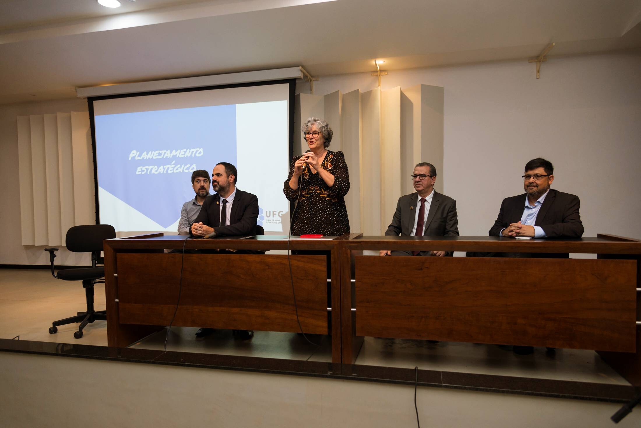 A reitora da UFG, Angelita Lima, deu continuidade à reunião destacando algumas das principais intenções com a pós-graduação na UFG, como manter e ampliar a qualidade dos cursos, tanto de mestrado e doutorado, como de especializações, bem como aumentar o alcance social da pós-graduação. Entre as propostas ela ressaltou melhorar a comunicação dos programas da UFG, que é um dos objetivos da Escola de Pós-graduação proposta no planejamento e a resolução sobre Residência Multiprofissional em Docência, que ela espera seja arrojada e inovadora e possa ser levada a outras instituições. O vice-reitor, Jesiel Carvalho, destacou o crescimento da UFG tanto quantitativo como qualitativo. Ele avalia que talvez uma proposta para alguns cursos de pós-graduação da UFG seja a fusão de programas para aumentar a relevância das áreas e também pensar em ações e soluções para dar retorno mais rápido à sociedade por meio da pesquisa.