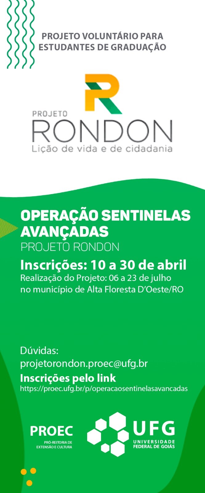 Dúvidas? Envie um e-mail para projetorondon.proec@ufg.br