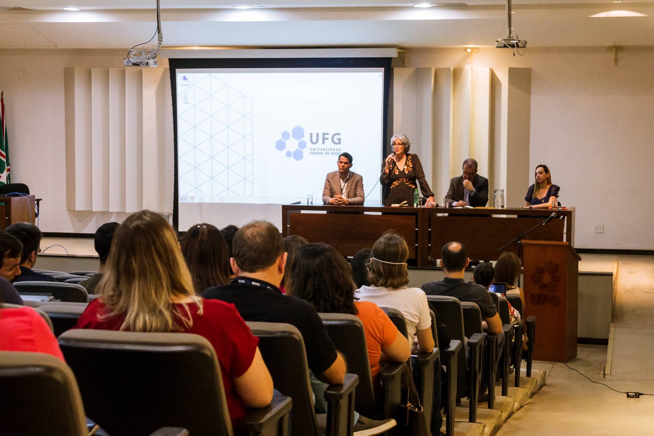 Com a ideia de reafirmar o papel estruturante da graduação na Universidade Federal de Goiás (UFG), representantes da gestão superior se reuniram, no dia 30/5, com os coordenadores dos cursos no Auditório da Biblioteca Central, no Câmpus Samambaia. Compuseram a mesa diretiva, a reitora da UFG, Angelita Pereira de Lima; o vice-reitor Jesiel Carvalho; o pró-reitor e a pro-reitora adjunta de Graduação, Israel Trindade e Heliny Carneiro. Além de abrir a janela para o diálogo com os servidores que ocupam esses cargos, foram anunciadas, na oportunidade, três ações já desenhadas para melhoria no trabalho desenvolvido a frente das coordenações.