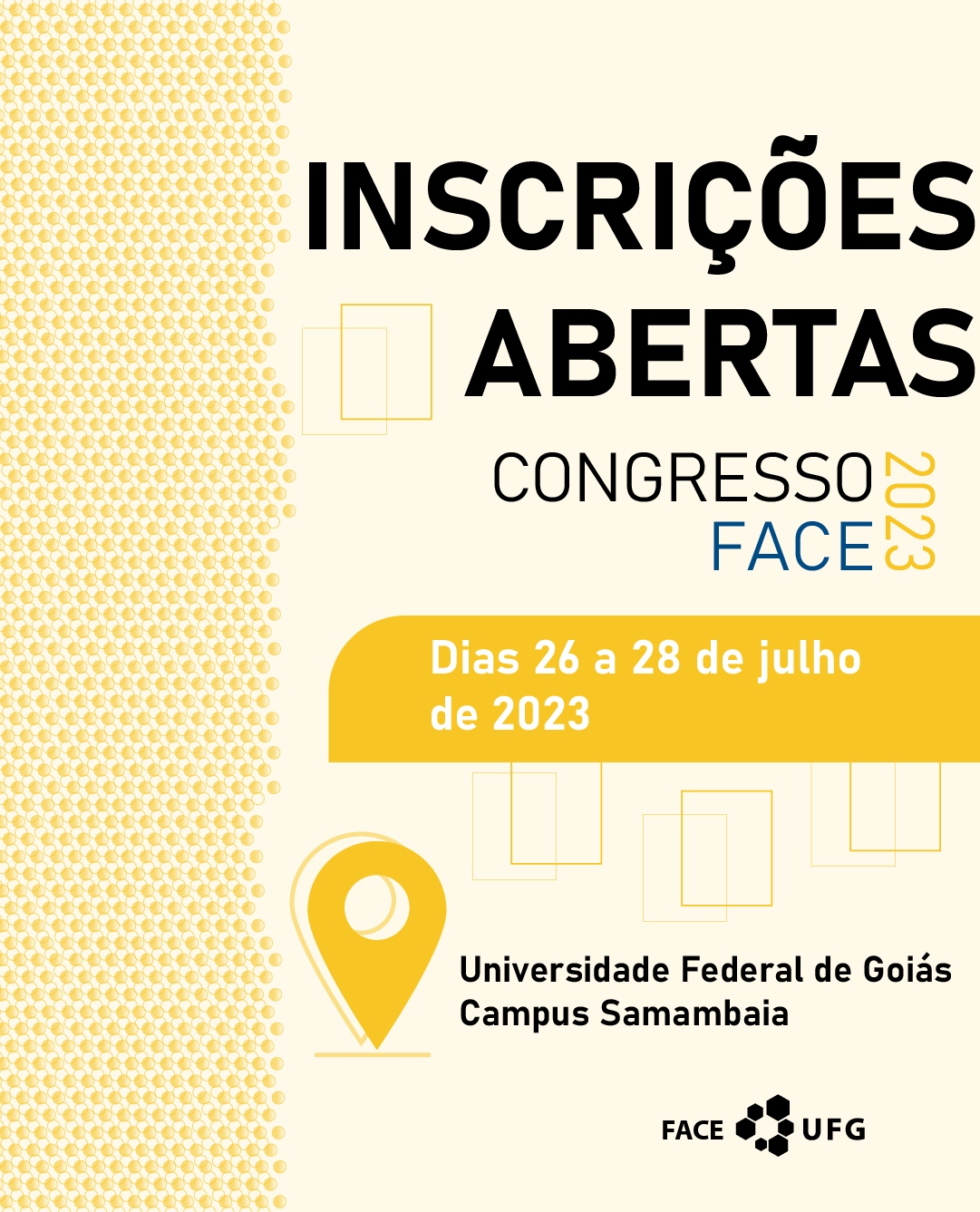 O Congresso FACE 2023 é um evento organizado pela Faculdade de Administração, Ciências Contábeis e Ciências Econômicas da Universidade Federal de Goiás (FACE/UFG). O evento ocorrerá de forma totalmente presencial, entre os dias 26 e 28 de julho de 2023, com a temática "Novos Desafios do Setor Público: Gestão e Financiamento".