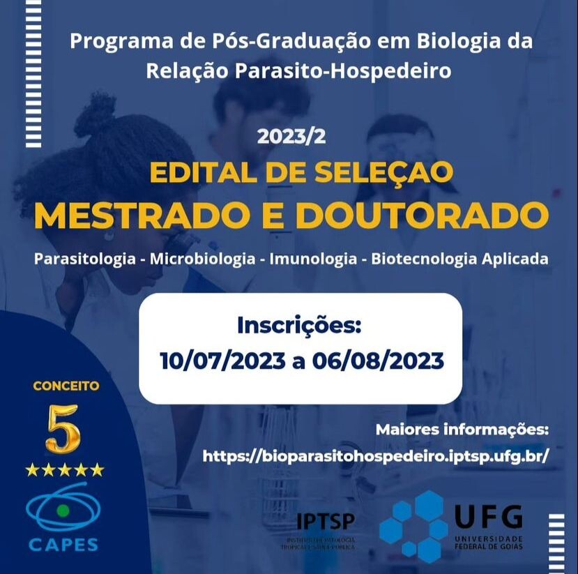 Publicado Edital 2023/2: Seleção de Mestrado e Doutorado em Biologia da Relação Parasito-Hospedeiro na UFG