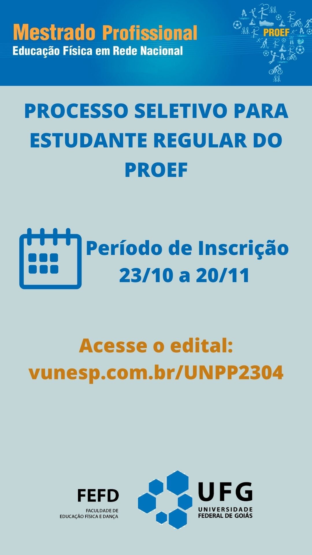 Para conferir o Edital de Abertura do Processo Seletivo para a 5ª turma do ProEF, acesse: https://www.vunesp.com.br/UNPP2304.