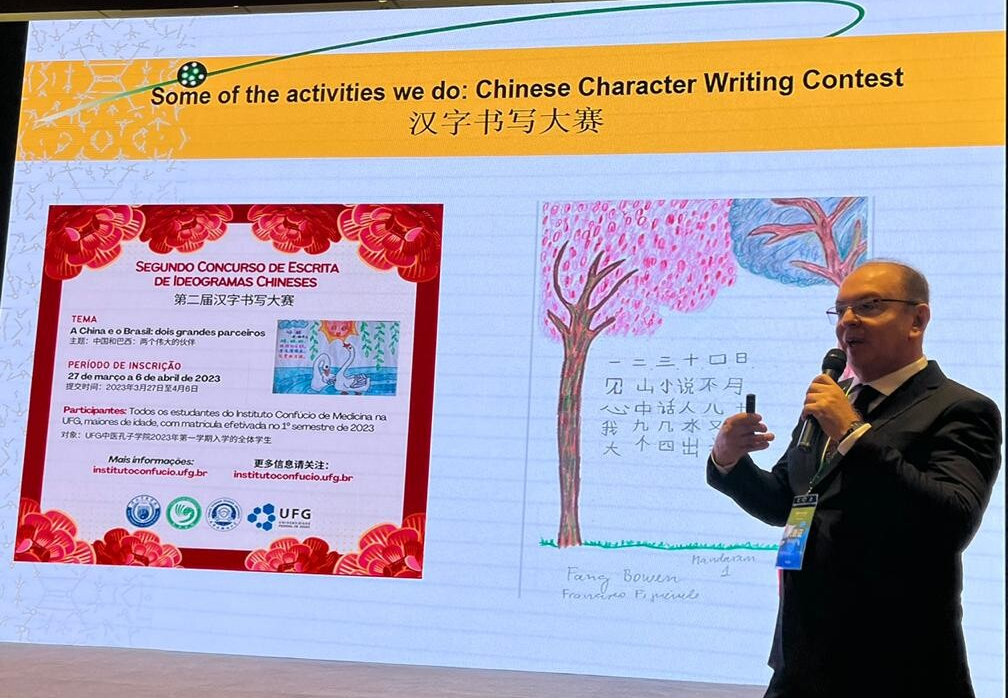 O diretor brasileiro do Instituto Confúcio de Medicina Chinesa na UFG, Francisco José Quaresma de Figueiredo, explicou que a First World Chinese Language Conference é o maior evento do Instituto Confúcio e que teve a participação de cerca de 4.000 pessoas de diversas partes do mundo. O docente comentou ter proferido uma palestra sobre as atividades do Instituto Confúcio na UFG, a convite da Chinese International Education Foundation.