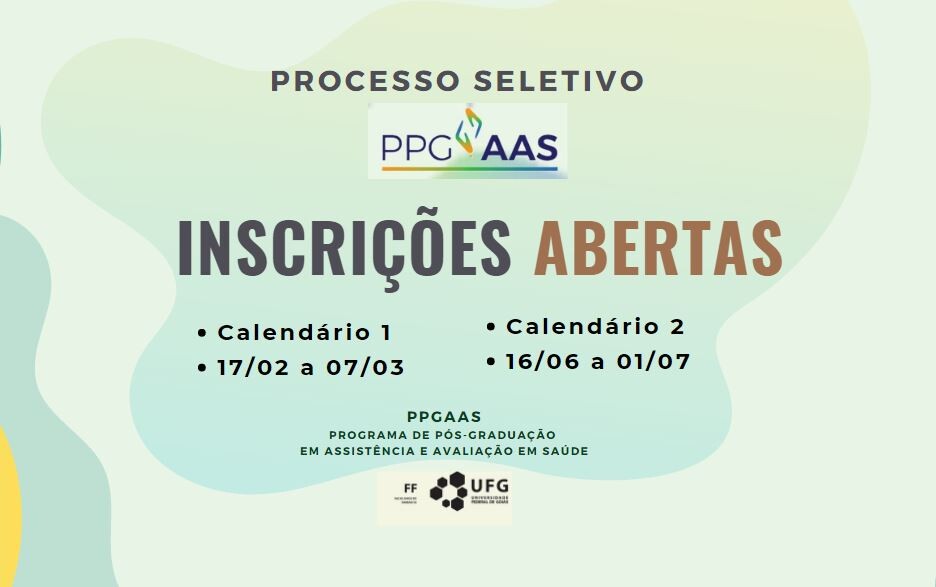 A Coordenadoria do Programa de Pós-Graduação em Assistência e Avaliação em Saúde - PPGAAS, da Faculdade de Farmácia da Universidade Federal de Goiás, torna público as normas do Processo Seletivo 2023-2024 para o preenchimento de vagas no nível de Mestrado. Para o nível Mestrado, serão ofertadas 64 (sessenta e quatro) vagas, sendo 38 (trinta e oito) vagas para o calendário 01, e 26 vagas (vinte e seis) para calendário 2.
