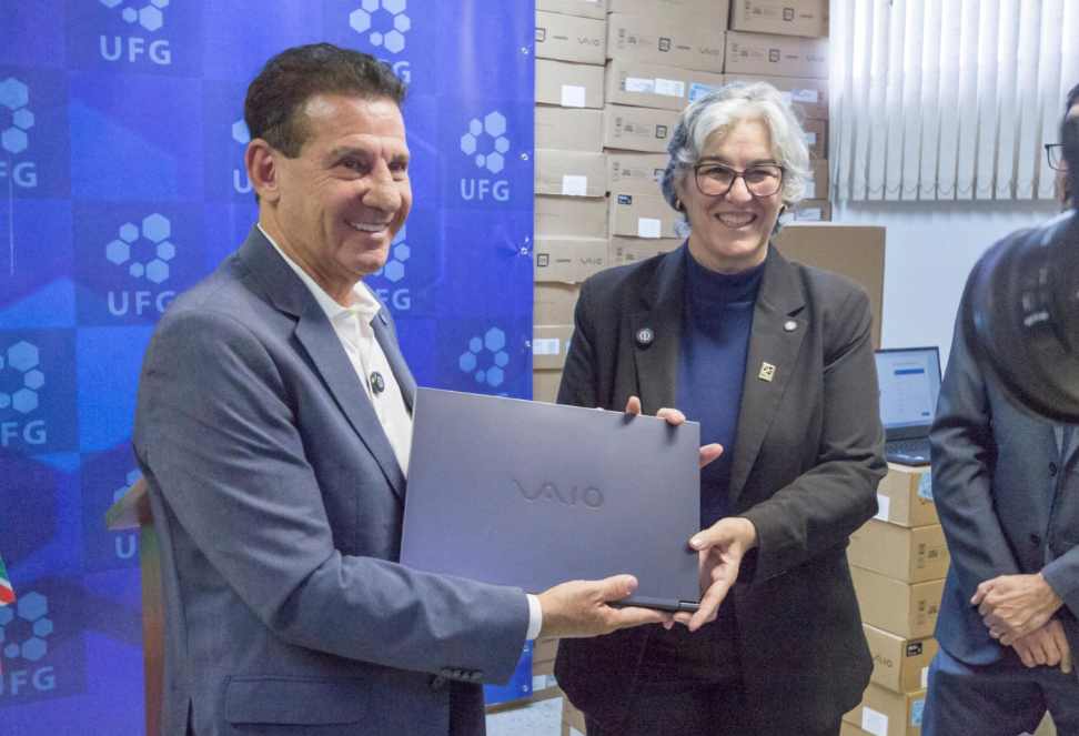 UFG recebe Vanderlan Cardoso para entrega de computadores