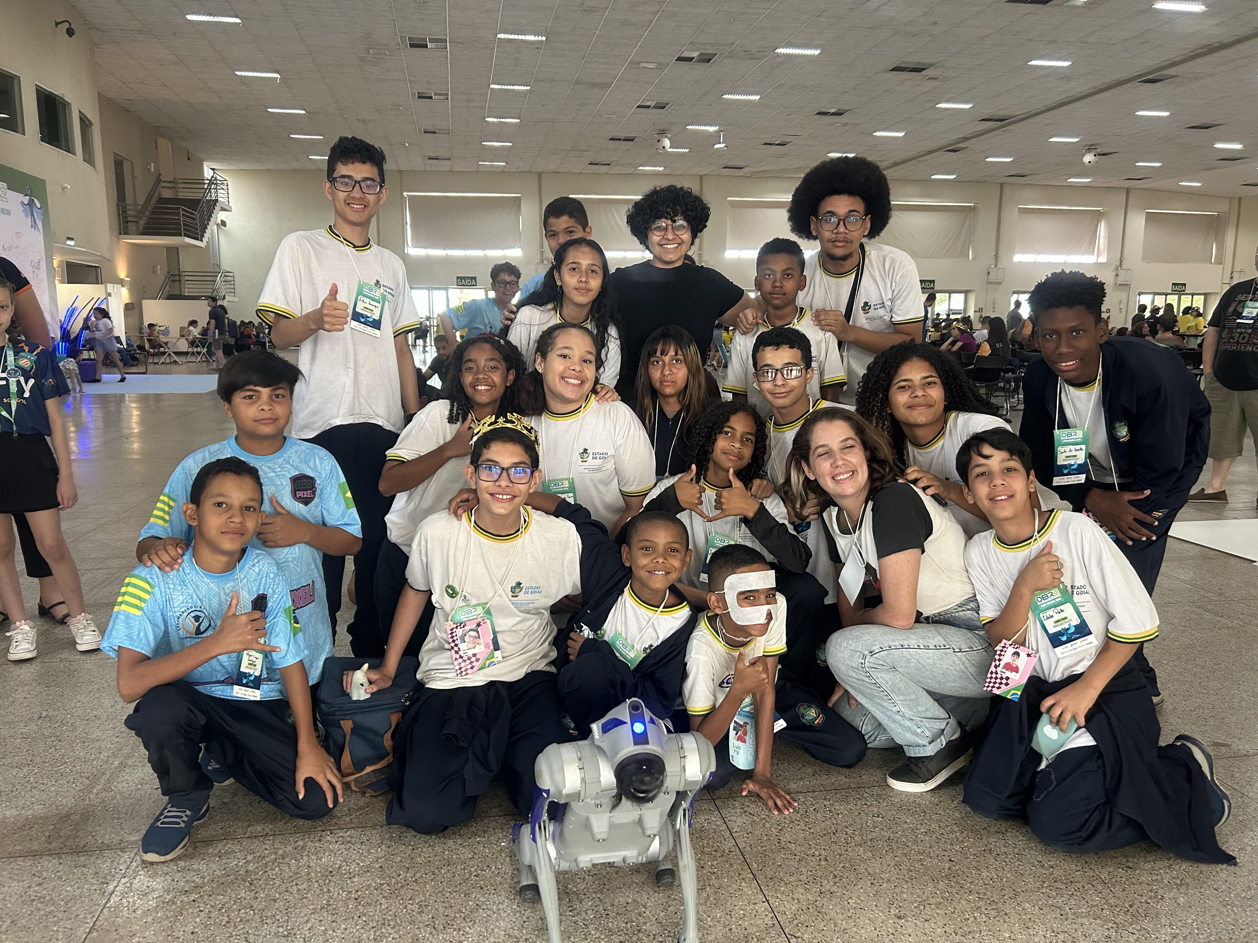 João Pedro Santos, de 11 anos, veio como integrante de equipe do Colégio Estadual Airton Senna da Silva, de Águas Lindas de Goiás. Incentivado pelas professores Camila Barros, de Física, e Rebeca Rocha, de Biologia, ele contou animado que já sabe programar em HTML e CSS, “eu quero ser programador quando crescer. Já consigo criar meus sites e quero continuar melhorando para vir estudar na UFG”, planejou. As professoras contam que as crianças se empolgam muito com a competição, e que o trabalho delas é o de fazer com que a animação se transforme em bons projetos “aconteceu de tudo ao longo do dia, a todo momento fomos surpreendidos, o que o era pra dar errado dando certo e o que contávamos como perfeito, falhando”, brincou Camila Barros. Ao todo participaram quatorze estudantes, entre 12 e 14 anos, que não saíram do Centro de Eventos da UFG até a premiação da competição.