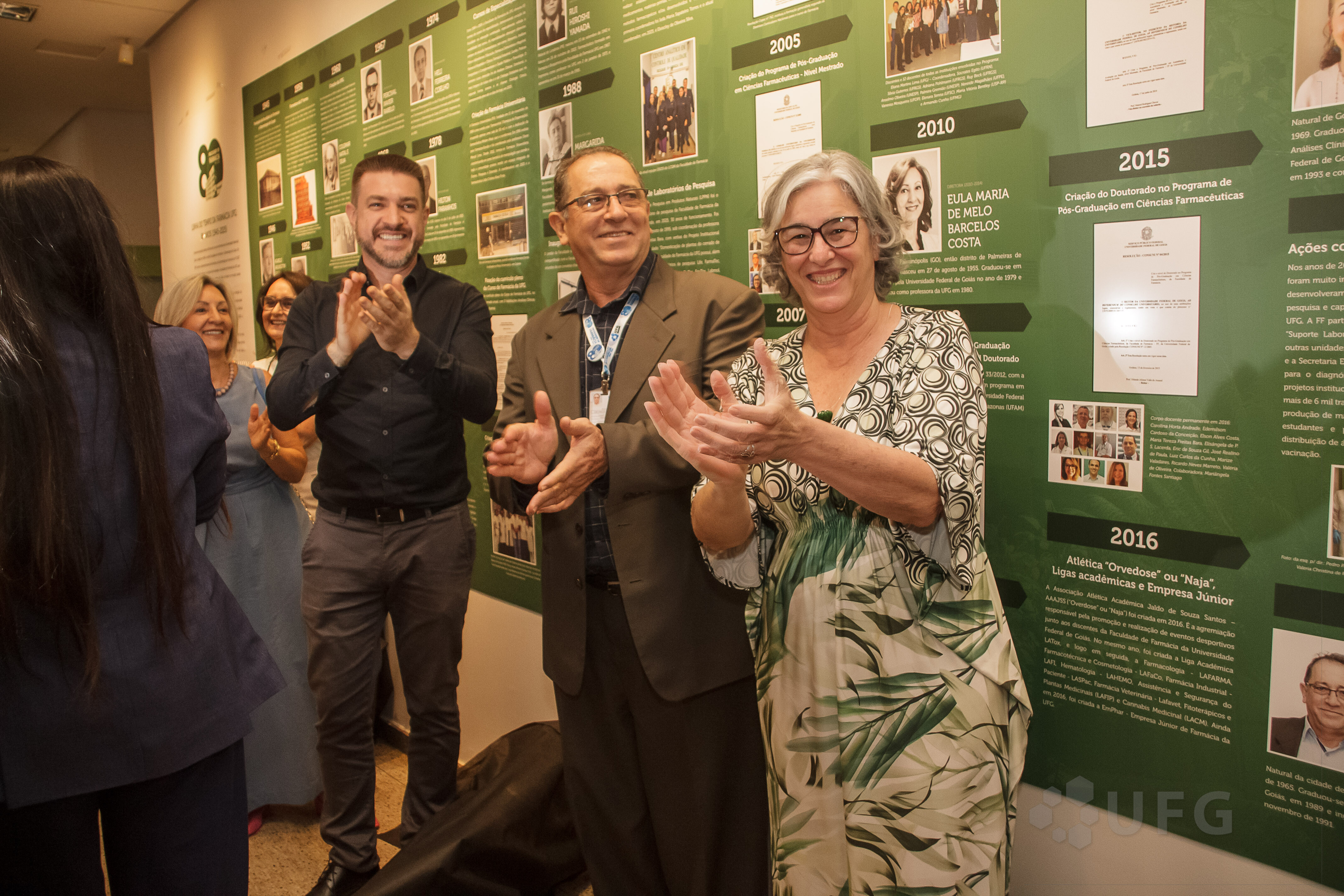Após a cerimônia foi inaugurada no Espaço Cultural da Farmácia, a Linha do Tempo da unidade, que também apresenta depoimentos em monitores que podem ser ouvidos pelos visitantes e uma exposição de fotos de momentos importantes da unidade. A exposição foi organizada pela professora do Instituto de Ciências Biológicas da UFG, Tatiana de Souza Fiuza. Também foram inauguradas as pinturas nas escadas da FF, celebrando o aniversário.