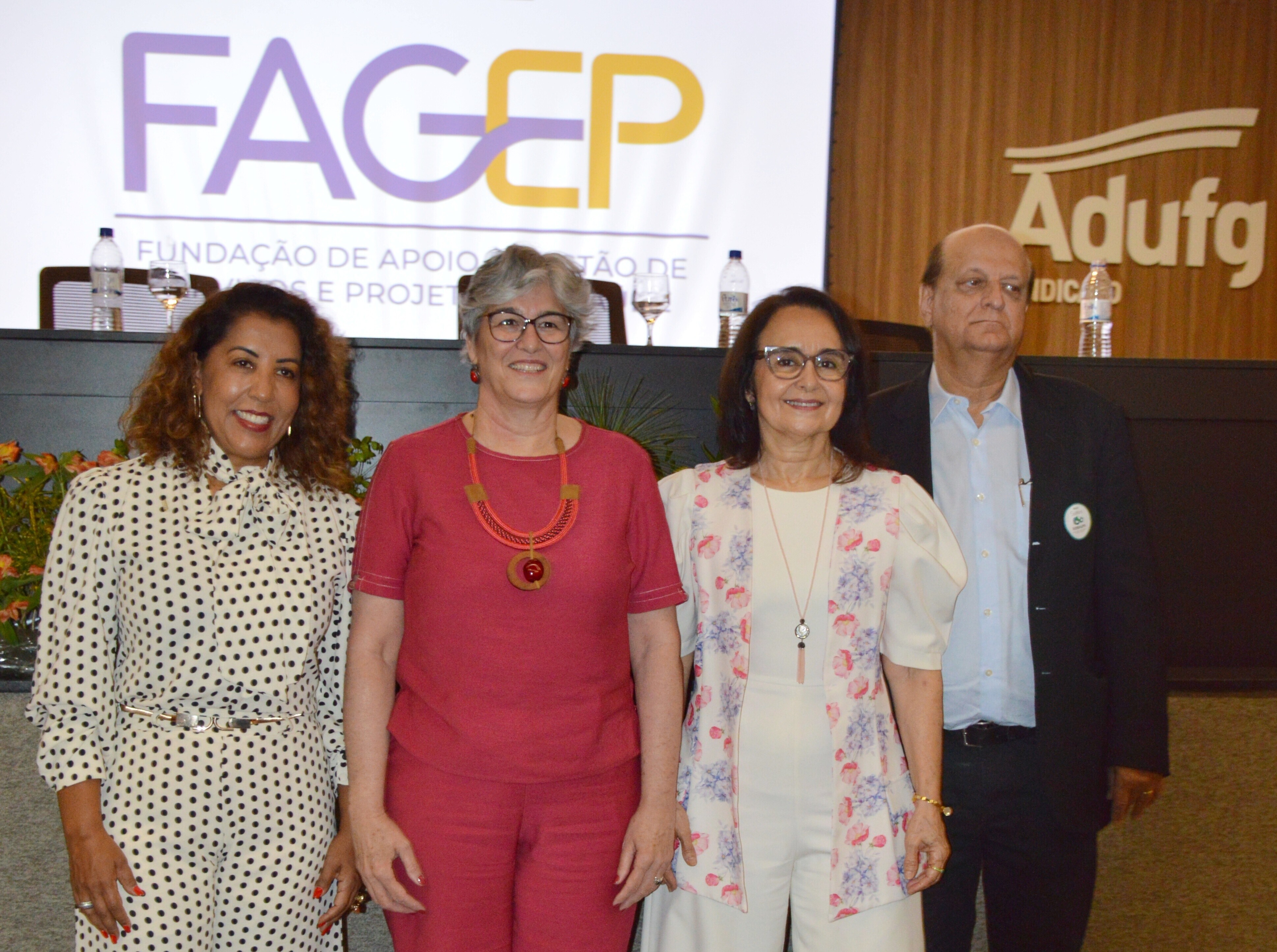 Na quarta-feira (19/11), a reitora Angelita Pereira de Lima participou da cerimônia de mudança institucional da Fundação de Apoio ao Hospital das Clínicas da UFG (Fundahc) para a Fundação de Apoio à Gestão de Serviços e Projetos em Saúde (Fagep). A solenidade ocorreu no auditório do Sindicato dos Docentes das Universidades Federais de Goiás (Adufg), com a presença de ex-gestores da Fundahc e de autoridades políticas e da comunidade acadêmica, incluindo a professora Sandramara Matias Chaves, nomeada reitora para a gestão 2026-2030 da UFG nessa terça-feira (18/11).