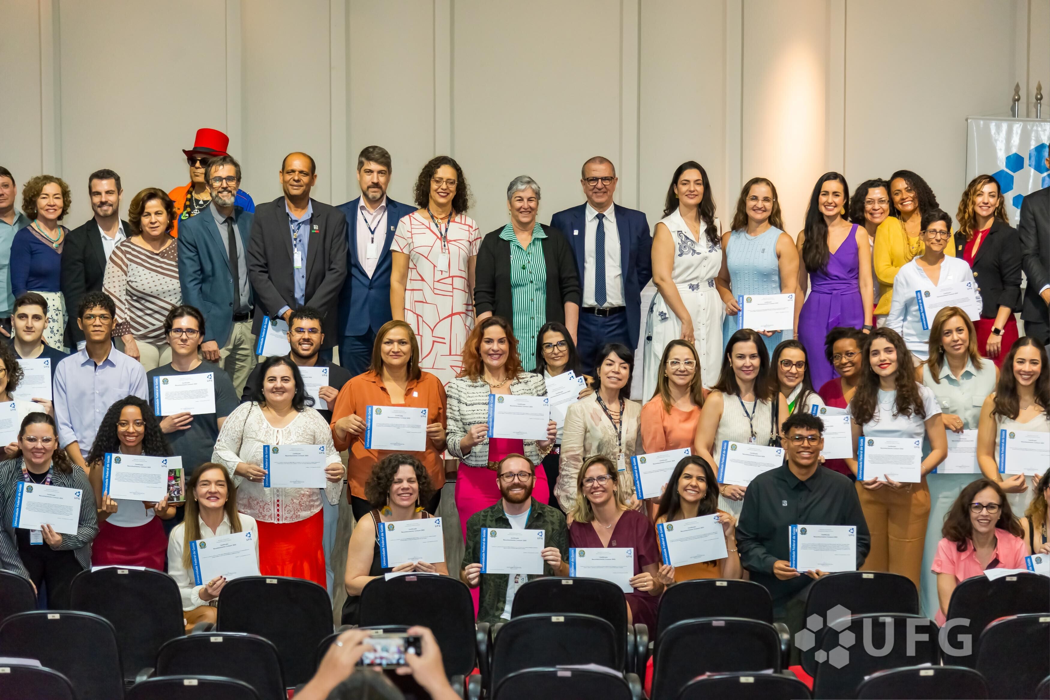 Premiação - Em seguida, a reunião conjunta dos três conselhos deu lugar à reunião final do Conselho Universitário e entrega do Prêmio Consuni 2025. Os certificados foram entregues pelos secretários, pró-reitores, pela reitora da UFG, Angelita Pereira de Lima e pelo vice-reitor, Jesiel Carvalho.