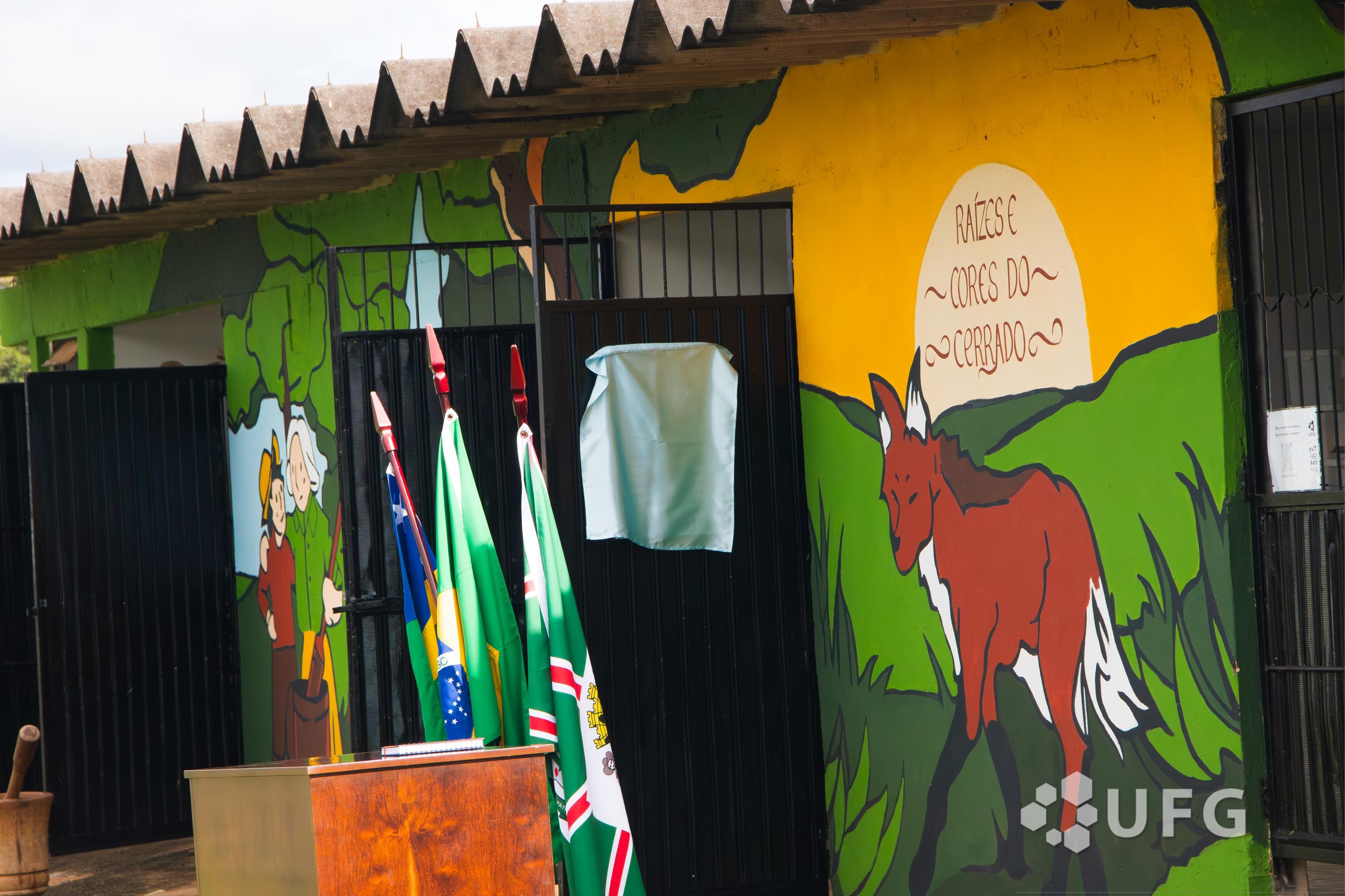 O mural inaugurado é uma obra que busca representar a identidade do setor e a biodiversidade do bioma, trazendo elementos como o sagrado feminino, o lobo-guará, a ovinocultura e a figura do agricultor familiar quilombola. O projeto é resultado de uma colaboração inédita entre a Faculdade de Artes Visuais (FAV), a Escola de Agronomia (EA) e a EVZ, unindo saberes técnicos e artísticos. A execução do painel foi viabilizada pelo patrocínio do Sindicato dos Docentes das Universidades Federais de Goiás (ADUFG).
