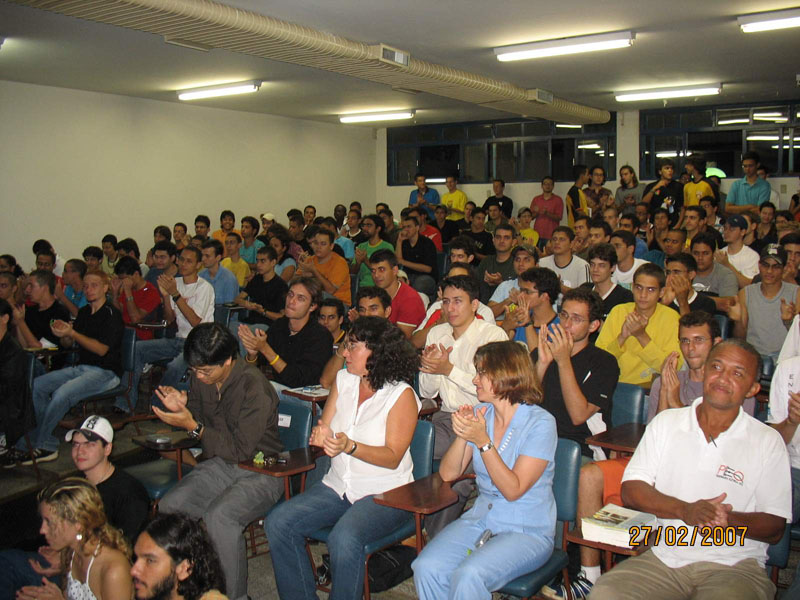 No dia 27, ocorreu uma reunião no auditório da EEEC/UFG para oficializar a implementação do novo programa, como também esclarecer as atividades dos/as tutores/as e as atribuições aos alunos/as. Na reunião estiveram presentes os/as professores/as e graduandos/as do regime semestral da EEEC/UFG; o reitor a UFG, professor Edward Madureira Brasil; a pró-reitora de Graduação, professora Sandramara Matias Chaves; o diretor da EEEC, professor Reinaldo; a coordenadora do curso de Engenharia Elétrica, professora Cacilda de Jesus Ribeiro; e o coordenador do curso de Engenharia de Computação, professor Marco Antonio Assfalk de Oliveira.