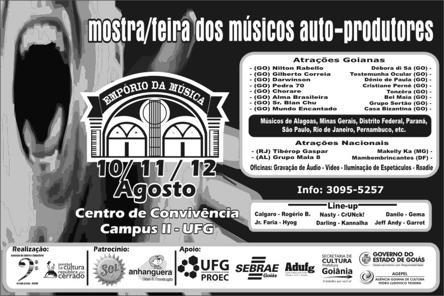 O evento é paralelo ao II Empório de Música e Feira e Mostra dos Músicos Auto-produtores, que acontece no Campus II, a partir das 18 horas, desta sexta-feira, 10. (Veja programação abaixo)