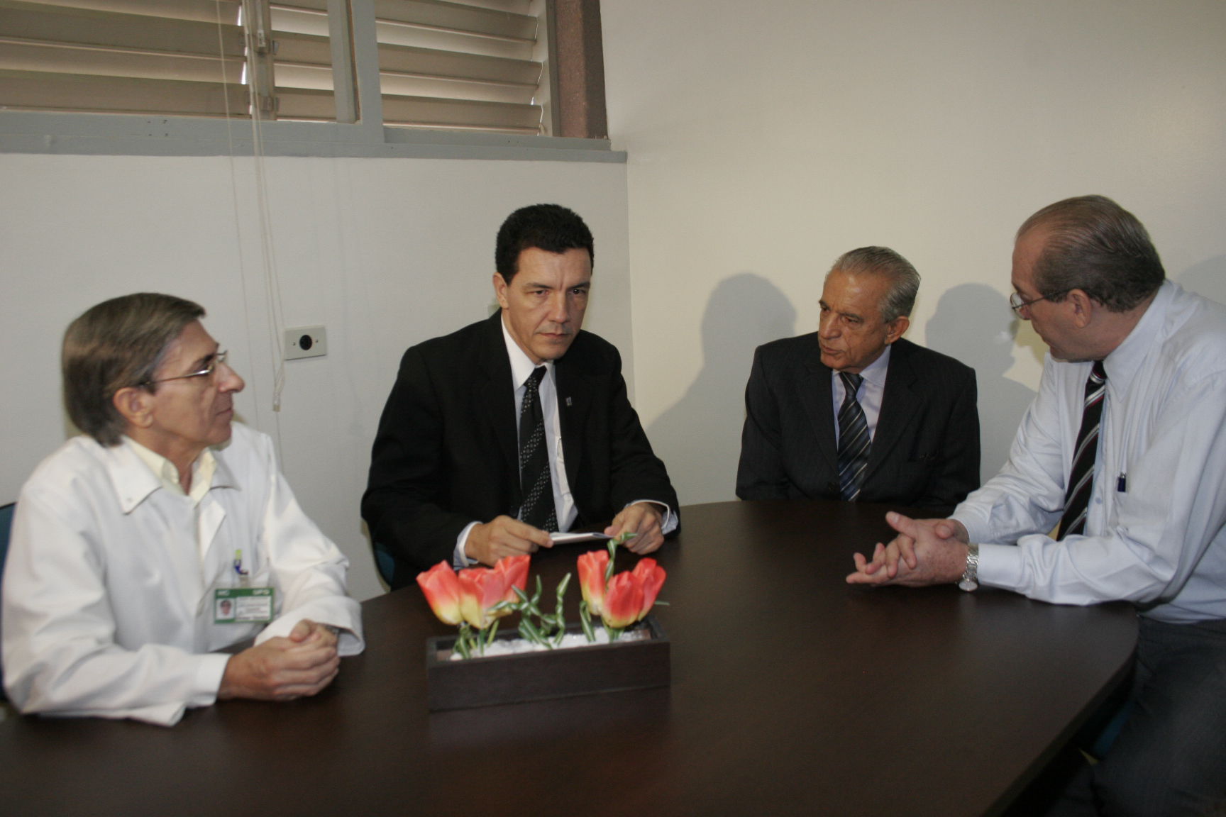 O prefeito de Goiânia, Íris Rezende, e o Secretário Municipal de Saúde, Paulo Rassi, visitaram o Hospital das Clínicas da UFG na manhã de hoje, dia 07, para um encontro com o reitor da UFG, Edward Madureira Brasil, e o diretor em exercício do HC, Luís Arantes Resende, que representou o diretor geral, José Garcia Neto.