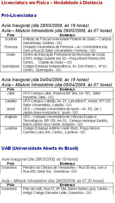 Aula ocorre nesta sexta-feira, às 19h, nos pólos de Goiânia, Formosa, cidade de Goiás e Quirinópolis.