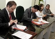 O convênio entre a UFG e o Programa de Bolsas Luso-Brasileiras Santander Universidades foi assinado nesta quinta-feira, às 10h30, no Gabinete da Reitoria. Na ocasião, o Reitor da UFG, Edward Madureira Brasil, destacou a importância do acordo para a inserção da universidade no âmbito internacional. “O grau de maturidade adquirido pela UFG torna ações como esta uma necessidade institucional”, afirma.