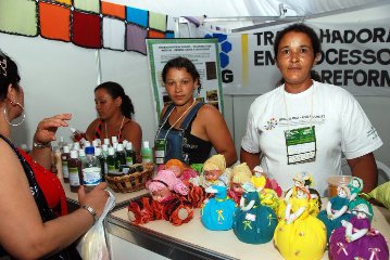 Na Expo Agro Familiar, os agricultores familiares comemoravam o movimento. Vários visitantes circularam pelo pavilhão onde a feira estava montada, procurando pelos doces caseiros, artesanatos com vários materiais, pimentas e outros produtos, como os cosméticos naturais da Dona Neusimar. Ela e seu marido, Seu Valdeir, vieram do assentamento São Domingos dos Olhos D’água, no município de Morrinhos, para vender seus shampoos, cremes hidratantes e sabonetes feitos com frutos do cerrado na exposição.