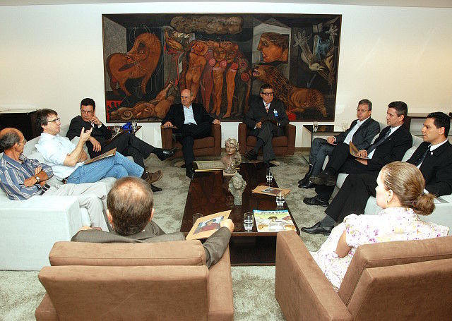 O professor Edward aproveitou a ocasião para convidar o presidente da OJC e o diretor de jornalismo Luiz Fernando Rocha Lima, também ex-aluno da UFG, que estava na reunião, para participarem das comemorações do 48º aniversário da Universidade Federal de Goiás, em dezembro.