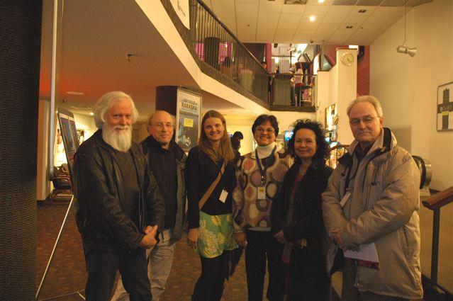 Lançamento do filme Cerrado: quanto custa?, de Rosa Berardo, no cinema du PArc, Montreal. Da esquerda para a direita: professor Normand (UQAM), Michel Coulombe (Radio Canadá), Emily Groth, Rosa Berardo, Manon BArbeau, Gaetan Trembley (CERB –UQAM).
