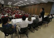 Em cerimônia coletiva realizada no auditório da Faculdade de Medicina da Universidade Federal de Goiás (UFG), foram empossados ontem, 28, 141 novos docentes e técnicos-administrativos, que passam a integrar o quadro de servidores efetivos da universidade. Assinaram o termo de posse 105 professores e 36 técnicos-administrativos, que já podem começar a trabalhar imediatamente nas diversas unidades da UFG, nos campus universitários de Goiânia, Catalão e Jataí. Os novos servidores são oriundos de vários concursos públicos realizados pela instituição em 2008.