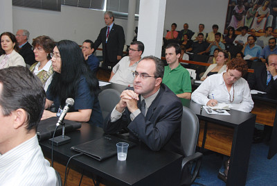 Durante toda a manhã do hoje professores, estudantes e entidades ligadas ao desenvolvimento científico e tecnológico lotaram a sala Solon Amaral da Assembléia Legislativa. A audiência pública foi proposta pelos deputados Thiago Peixoto (PMDB) e Mauro Rubem (PT) para mobilizar a bancada goiana contra a aprovação da Proposta de Emenda Constitucional (PEC), que reduz de 0,5% para 0,1% do orçamento estadual os repasses da Fundação de Amparo à Pesquisa do Estado de Goiás (Fapeg), o que representaria um duro golpe contra a fundação, criada há apenas três anos. Com a redução proposta ocorreria um corte de 33 milhões de reais no financiamento de pesquisas científicas no estado de Goiás e a paralização das atividade de redes de pesquisas formadas nas diversas áreas do conheciemto. A proposta deve ser votada hoje a partir das 16:00 h, durante a sessão ordinária. Ao final da audiência, Thiago Peixoto convocou os presentes a mobilizarem-se até a votação da proposta para pressionarem os parlamentares da base aliada a não votar a favor da redução.