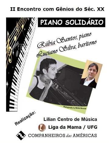 As pianistas Rúbia Santos (University of Wyoming/EUA) e Lilian (Centro de Música de Goiânia) se apresentarão às 20 horas, no teatro Asklepiós, da Faculdade de Medicina da UFG, no Setor Universitário. Os ingressos custarão R$10,00.