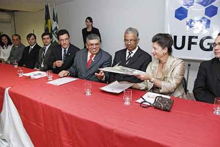 A Universidade Federal de Goiás promoveu, na noite de ontem (13), a comemoração dos 111 anos da Faculdade de Direito. Prestigiada por várias autoridades, a solenidade foi iniciada com uma belíssima apresentação do Coro de Câmara da Escola de Música e Artes Cênicas (Emac). A cerimônia também marcou o lançamento do Inventário Documental do Monumento aos Bandeirantes, organizado pela Divisão de Comunicações da UFG com base em documentos doados à universidade em 1987 pela família Cunha Bueno.