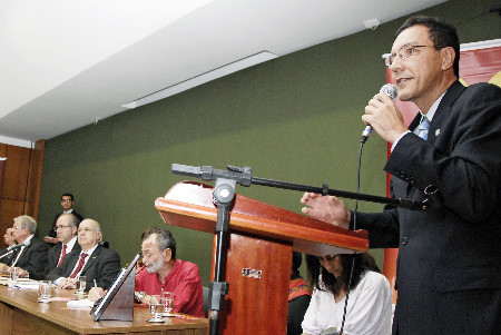 O professor Edward Madureira, por sua vez, deu ênfase à atualidade, destacando os trabalhos da universidade para garantir a justiça, a paz e a igualdade na educação e na organização social contemporânea. Ele destacou avanços na compreensão da equidade entre os desiguais, que estabeleceu na UFG ações afirmativas como o sistema de cotas para negros e estudantes oriundos de escolas públicas no vestibular e consolidou cursos como o de Licenciatura Indígena, Letras/Libras, Pedagogia da Terra e Direito para os beneficiários da reforma agrária – este último ainda sob júdice. “A UFG recorrerá na Justiça até o fim para garantir o direito de estudar que o homem do campo tem”, pronunciou.