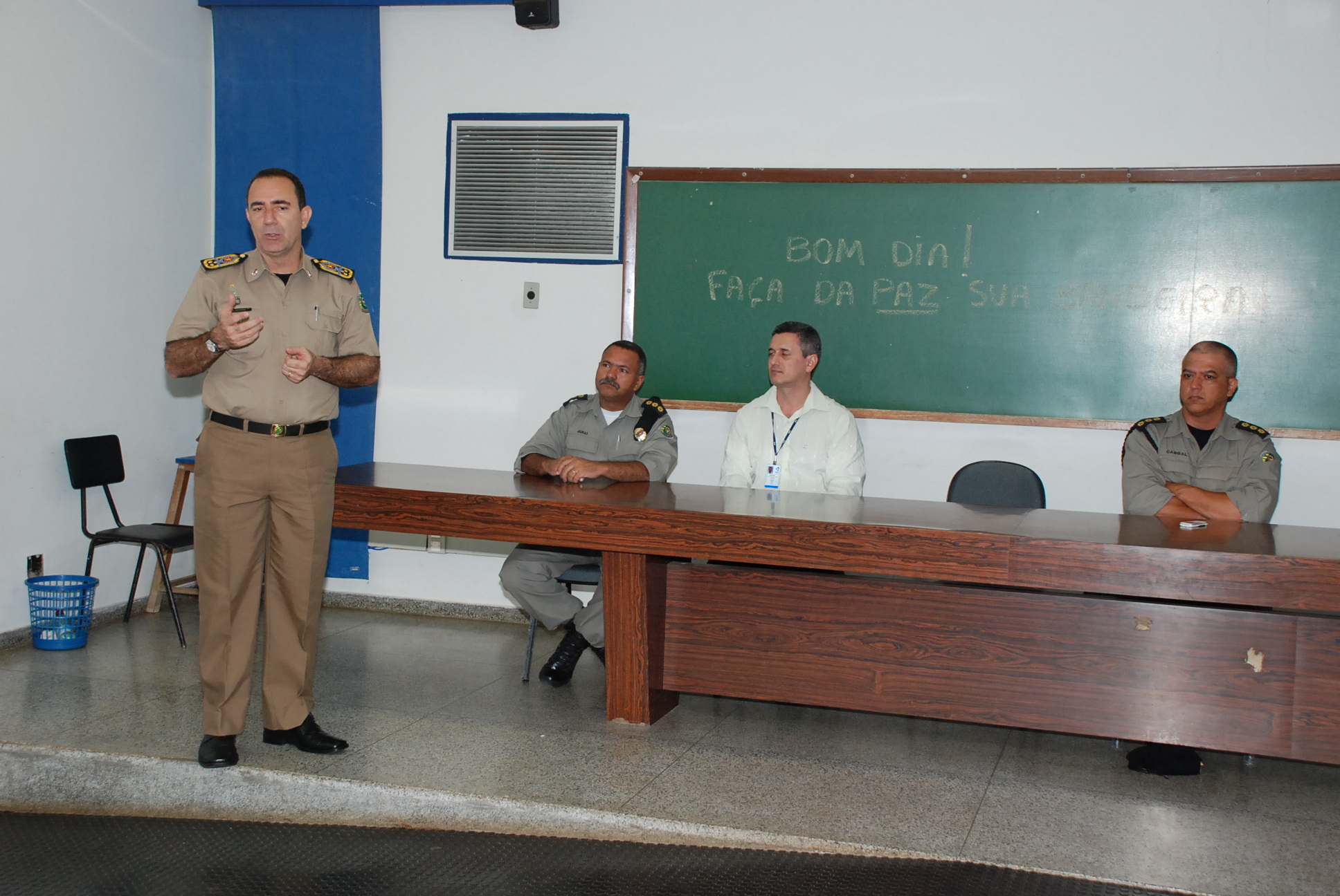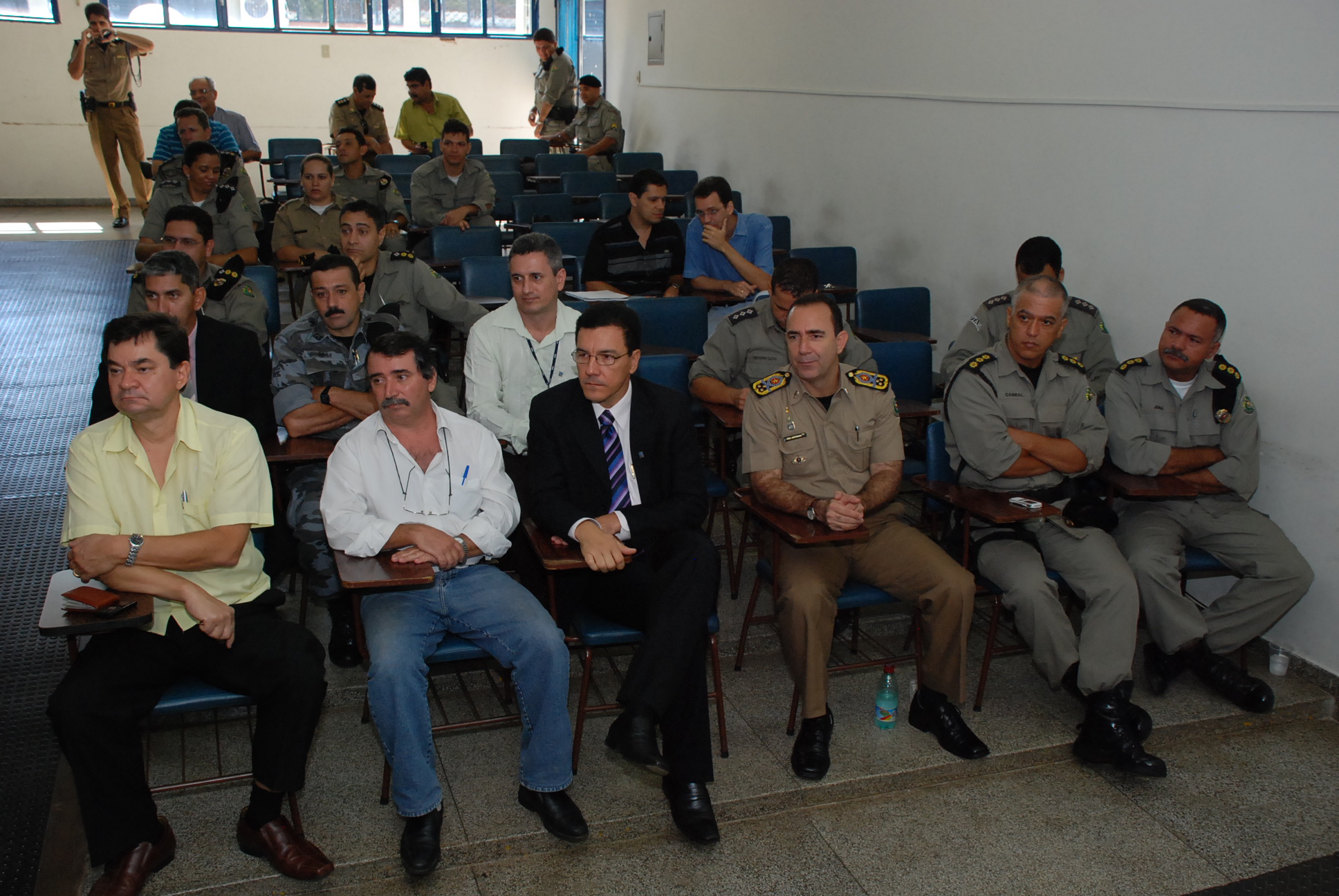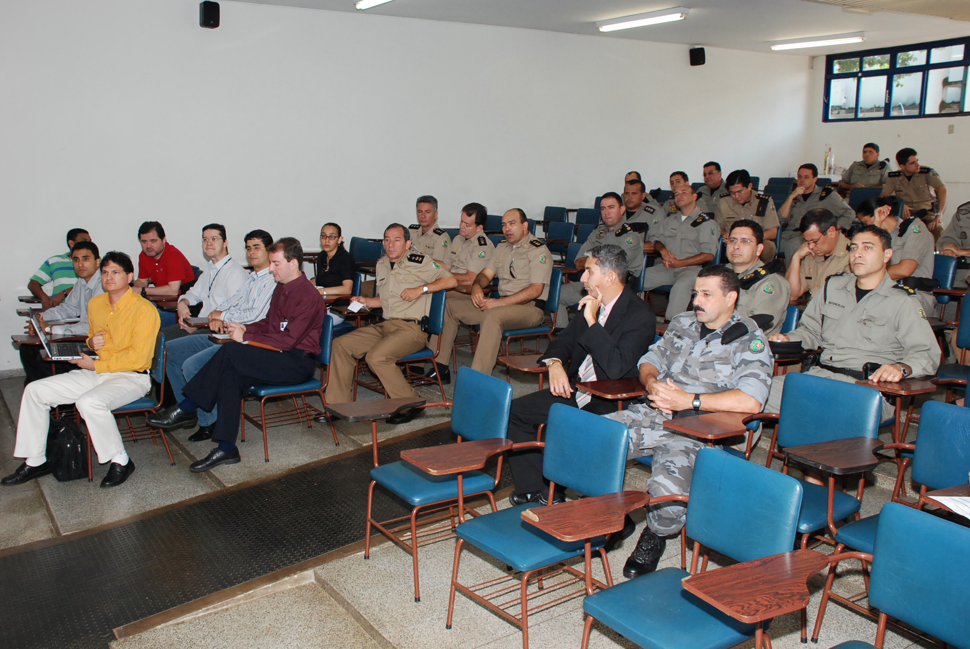 Na manhã de ontem o reitor Edward Madureira Brasil e professores da Escola de Engenharia Elétrica e de Computação (EEEC) reuniram-se com o comandante geral da Polícia Militar de Goiás (PMGO), coronel Carlos Antônio Elias, e comandantes da PMGO. A reunião teve como objetivo estabelecer uma parceria entre as instituições gerando a possibilidade de aplicar pesquisas realizadas na universidade para apoiar políticas públicas na área da segurança da PMGO.