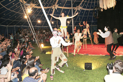 Mesmo debaixo de chuva a comunidade acadêmica da UFG lotou ontem (28/10) a tenda armada no Câmpus Samambaia para a apresentação do Circo Lahetô. As arquibancadas foram poucas para acomodar todos os adultos e as crianças que se encantaram com as acrobacias realizadas no trapézio e no tecido, malabarismos com o fogo e muitas palhaçadas do espetáculo A história de Goiás no picadeiro, dentro da programação cultural do VI Conpeex.