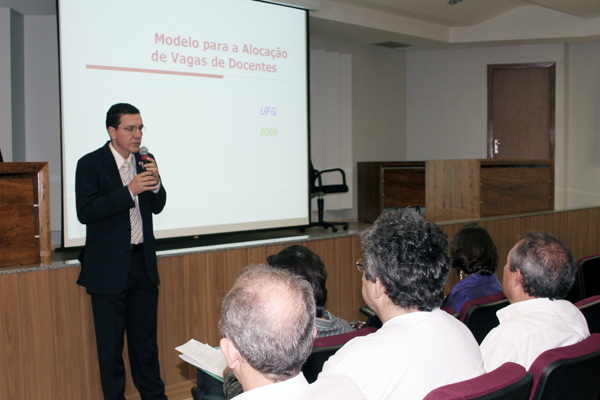 Durante o dia de hoje (19/11), ocorreu, no auditório da Faculdade de Odontologia, o seminário que discutiu o modelo de alocação de vagas docentes na Universidade Federal de Goiás. O evento teve como público alvo os diretores e os coordenadores das graduações, pós-graduações e de extensão e cultura das unidades acadêmicas, e foi proposto com o objetivo de reformular a resolução interna que define critérios para o banco de vagas da UFG, a estrutura do modelo em duas fases de alocação, as variáveis utilizadas, as fontes dos dados, o banco de vagas de reserva, a alocação de vaga de docente titular, além de medidas de segurança e modelo. Após a definição desses pontos, as propostas para a nova resolução deverão ser submetidas à aprovação do Conselho Universitário (Consuni) da instituição.