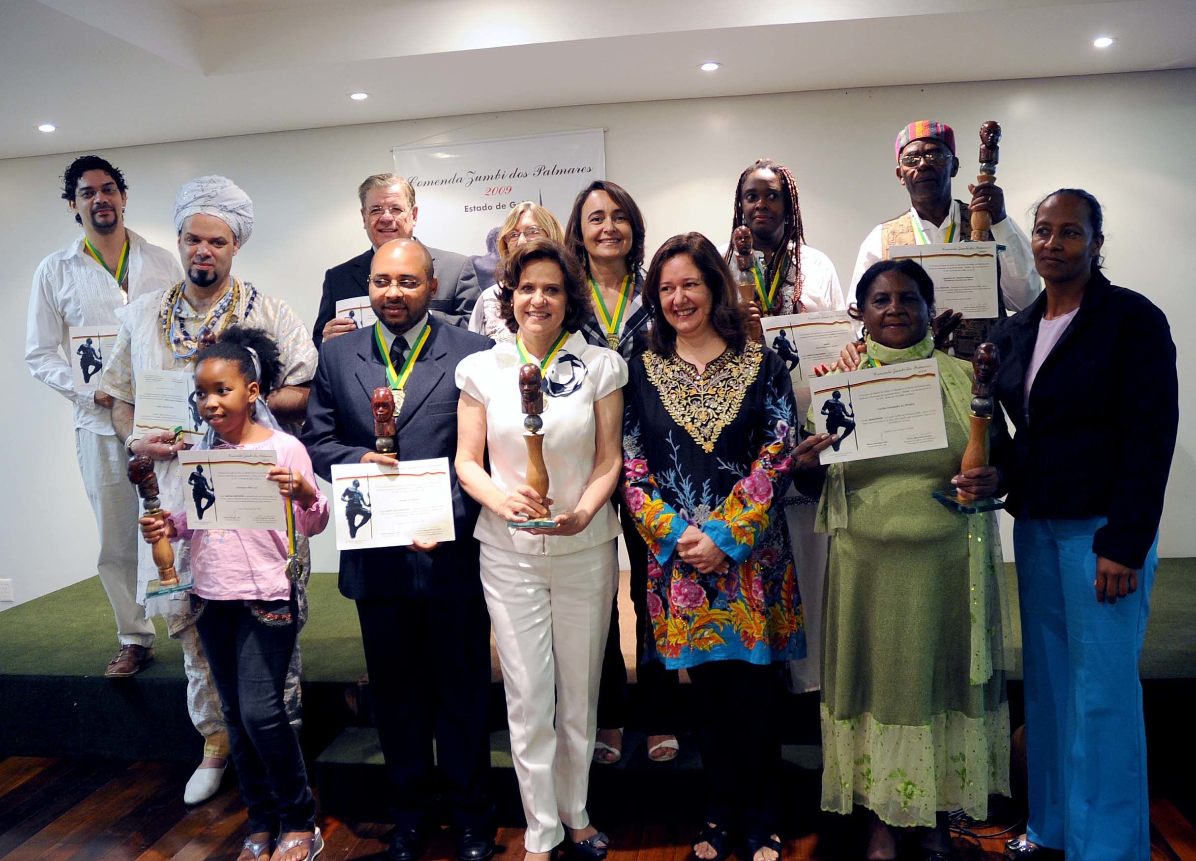 O Dia da Consciência Negra, comemorado nesta sexta-feira (20/11), foi lembrado pelo governo do estado de Goiás, por meio da Secretaria Estadual de Políticas para Mulheres e Promoção da Igualdade Racial (Semira), com a entrega da Comenda Zumbi dos Palmares 2009. Em cerimônia realizada no Palácio das Esmeraldas, 11 troféus foram entregues a personalidades e instituições que se destacaram em ações contra o preconceito racial e que contribuíram para a formação de uma sociedade mais igualitária e respeitosa.