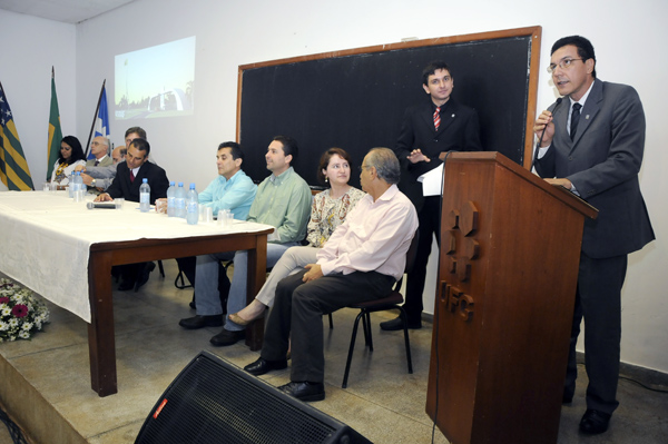 Na ocasião o reitor, Edward Madureira Brasil, fez questão de compartilhar com o professor aposentado do CAJ, Manuel Gabino Churata Masca, a comenda oferecida pela Câmara de Vereadores de Goiânia em homenagem à atuação da UFG no desenvolvimento da sociedade goiana. Em seguida o reitor reconheceu o empenho da bancada goiana na Câmara dos Deputados e da Assembléia Legislativa do estado de Goiás em conseguir recursos com o governo federal para o financiamento de obras na UFG. “Hoje temos mais de 90 obras iniciadas nos câmpus”, informou o reitor. Ele ainda destacou a atuação da direção do CAJ e de lideranças políticas locais no sentido de buscar a emancipação do câmpus. “A receita é agir de forma coesa, na esfera suprapartidária, acima de questões políticas locais, com o propósito de conseguirmos para o povo goiano mais instituições federais de ensino superior”, declarou Edward Madureira Brasil.