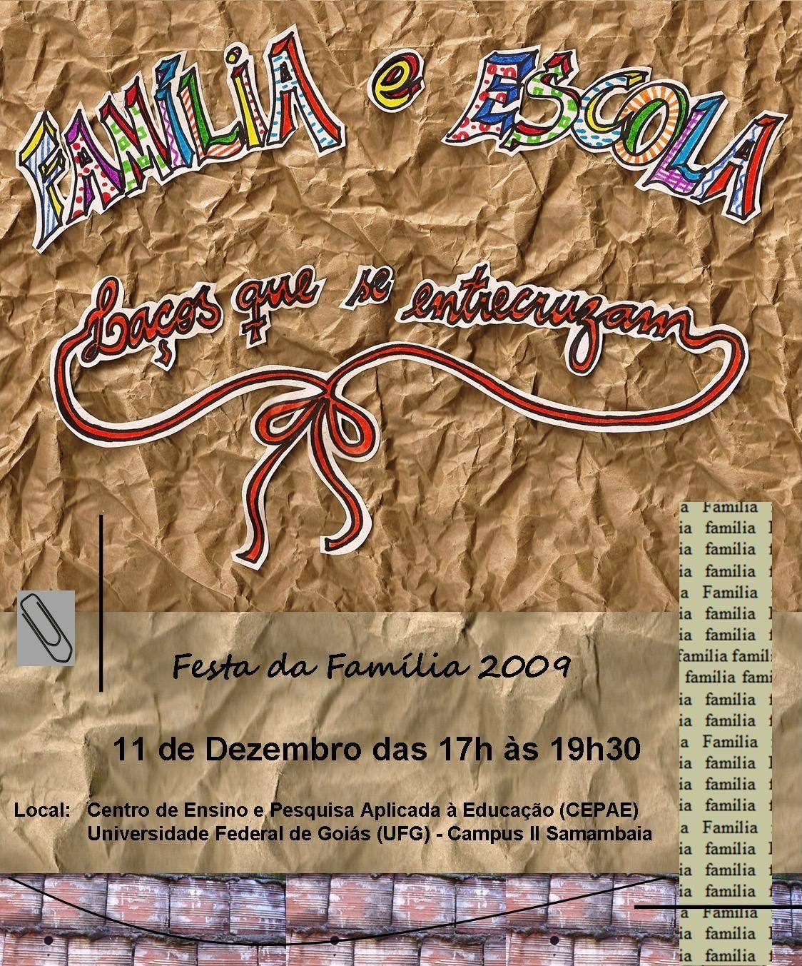 Está programada para o dia 11 de dezembro, às 17h, a tradicional Festa da Família do CEPAE com a participação de (ex)alunos e seus familiares, (ex)professores e familiares, (ex)funcionários e familiares.