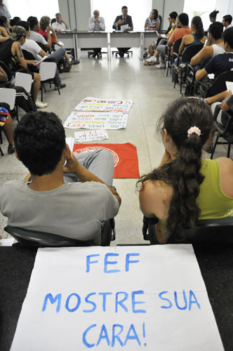 Também estiveram presentes nesse encontro os pró-reitores de Administração, Orlando Amaral, de Graduação, Sandramara Matias, e de Assuntos da Comunidade, Ernando Filizzola. Ao final, as reivindicações foram encaminhadas ao Centro de Gestão do Espaço Físico (Cegef), que cuidará de questões como iluminação, manutenção dos bebedouros e pequenas reformas. Além disso, uma nova reunião, dessa vez envolvendo também os diretores da FEF, será agendada na próxima semana.