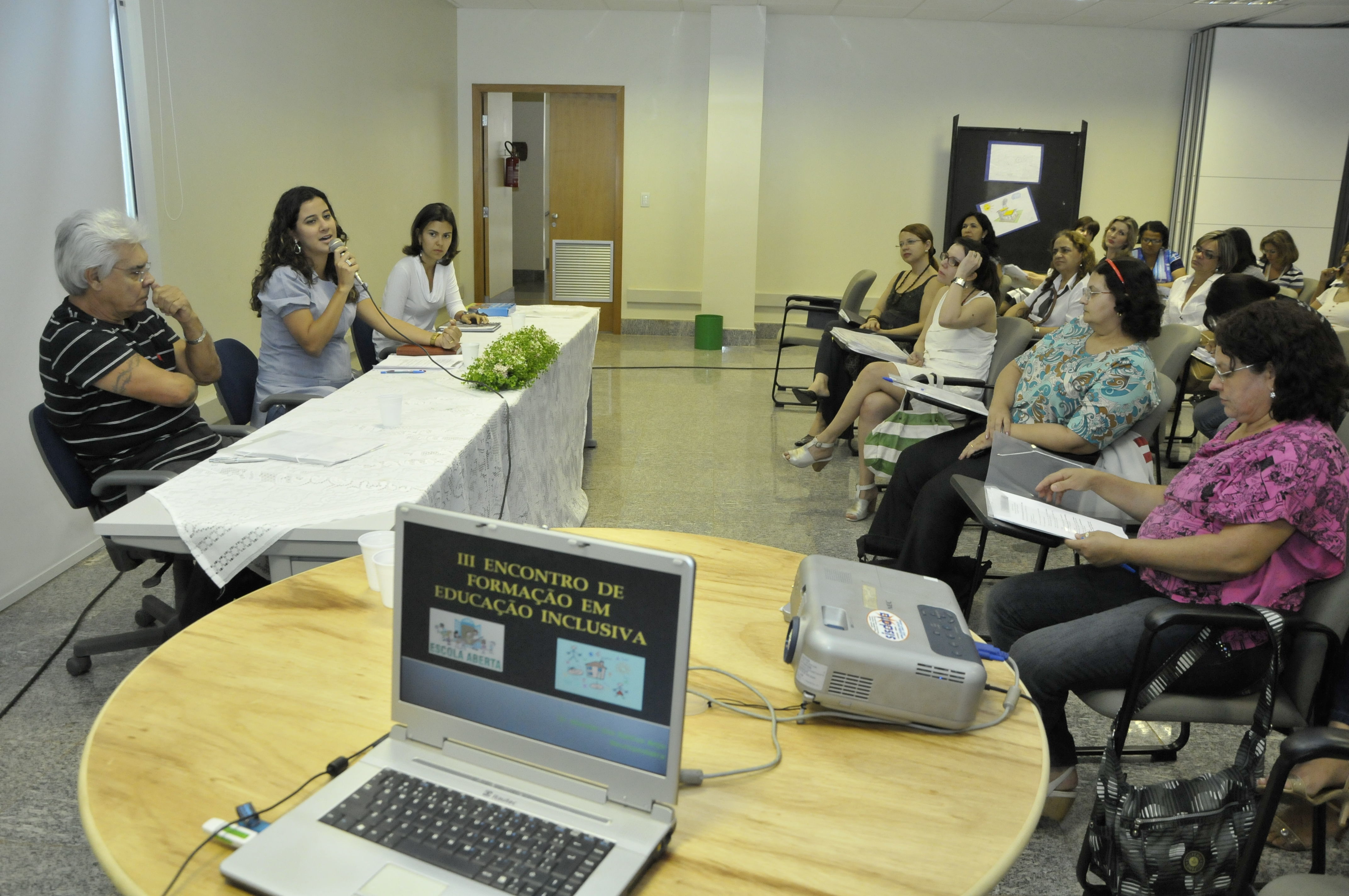 Wander dos Anjos falou sobre os aspectos biológicos da deficiência intelectual, o tratamento, as potencialidades e as limitações das pessoas portadoras. "O que acontece é que essas crianças vão mal na escola e são marginalizadas, mas não se procura a origem do problema", destacou. Mariana Elias falou sobre o acolhimento e a inclusão de alunos com necessidades especiais, além de contar suas experiências na APAE e no Atendimento Educacional Especializado (AEE). Ela também destacou o papel do professor e as estratégias metodológicas a serem utilizadas para lidar com esses alunos.