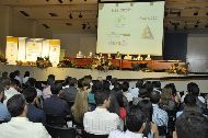 O Centro de Cultura e Eventos Professor Ricardo Freua Bufáiçal recebe, esta semana, estudantes, produtores e pesquisadores interessados em aumentar seus conhecimentos a respeito do cultivo de milho e sorgo. Com o tema “Potencialidades, Desafios e Sustentabilidade”, a cerimônia de abertura do Congresso Nacional de Milho e Sorgo ocorreu no domingo (29/08), no Centro de Eventos do Câmpus Samambaia. Estiveram presentes o reitor da UFG, Edward Madureira Brasil, a chefe geral da Embrapa Milho e Sorgo, Vera Maria Carvalho Alves, representando o diretor presidente, Pedro Antônio Arraes Pereira, a diretora do Câmpus Jataí, Sílvia Corrêa Santos, o diretor do CNPq, José Oswaldo Siqueira, e o superintendente de Planejamento e Política Agrícola da Secretaria de Estado da Agricultura, Pecuária e Abastecimento de Goiás, Luis Becker Karst, representando o governador Alcides Rodrigues.