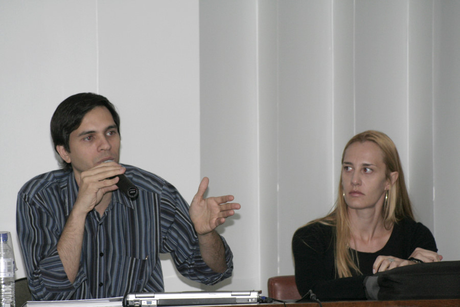 Professor Hugo Alexandre Dantas do Nascimento ao lado da professora Erika Cristine Kneib durante o seminário
