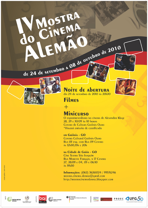 Será realizada, de 24/09 a 10/10, a quarta edição da Mostra do Cinema Alemão. Na programação estão previstos títulos de Ernst Lubitsch, diretor do cinema mudo, e de Alexander Kluge, um dos autores do Manifesto de Oberhausen, que fez deslanchar o movimento do Novo Cinema na Alemanha.