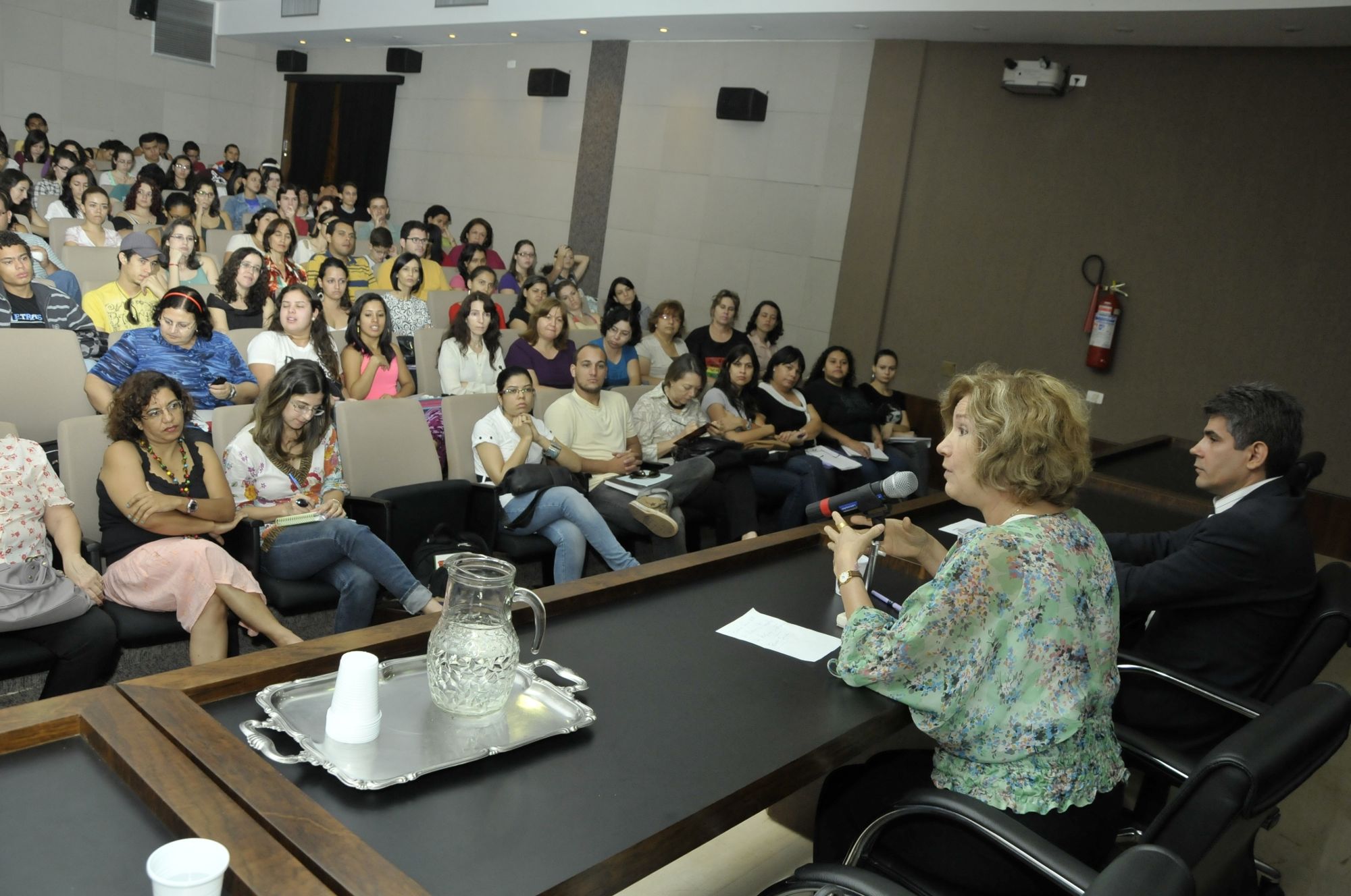 “A literatura é o desejo de alterar a vida”. Com esta frase, a escritora portuguesa Lídia Jorge começou sua palestra no seminário Diálogos Pertinentes, realizado na manhã de hoje (7/10), no auditório da Faculdade de Letras (FL) da UFG. O evento foi organizado pelo Centro de Estudos Portugueses da universidade e teve o apoio do Instituto Camões, da Embaixada de Portugal. De acordo com o coordenador do seminário, Rogério Santana, Diálogos Pertinentes é uma atividade constante do programa de pós-graduação da FL e visa à discussão da contemporaneidade da literatura.
