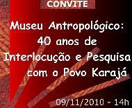 Dando continuidade às atividades comemorativas dos seus 40 anos, o Museu Antropológico da Universidade Federal de Goiás realiza, no próximo dia 09/11/2010, o evento Museu Antropológico: 40 anos de interlocução e pesquisa com o povo Karajá. Na ocasião, lideranças Karajá das aldeias Santa Isabel do Morro (Ilha do Bananal - TO) e Buridina (Aruanã - GO), receberão um DVD que sintetiza parte da história do Museu com este povo; interlocutores que se mantêm presentes em toda sua trajetória.