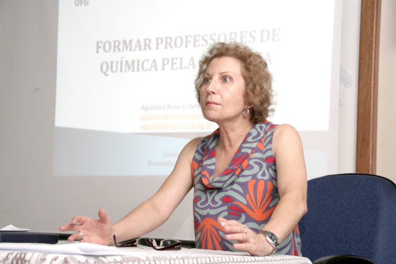 Como parte da cerimônia da abertura, a professora do IQ, Agustina Rosa Echeverría, proferiu palestra debatendo a importância de formar os professores de Química da educação básica mediante a prática da pesquisa. “A pesquisa é uma atitude do cotidiano do professor de Química e, por isso, o pesquisar deve acompanhar o professor em sua formação continuada, que dura toda sua vida profissional”, destacou a professora. Ela mencionou ainda a necessidade do professor da Educação Básica ser capaz de articular teoria e prática, ministrando conteúdos sem deixar de considerar a sua contextualização, a prática do trabalho coletivo e a parceria com as universidades.