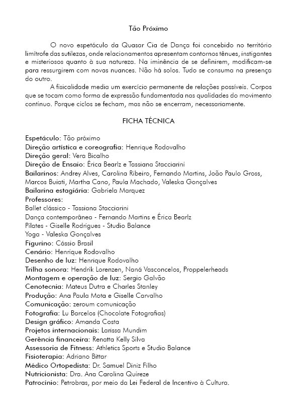 Espetáculo Quasar Cia de Dança "Tão Próximo"