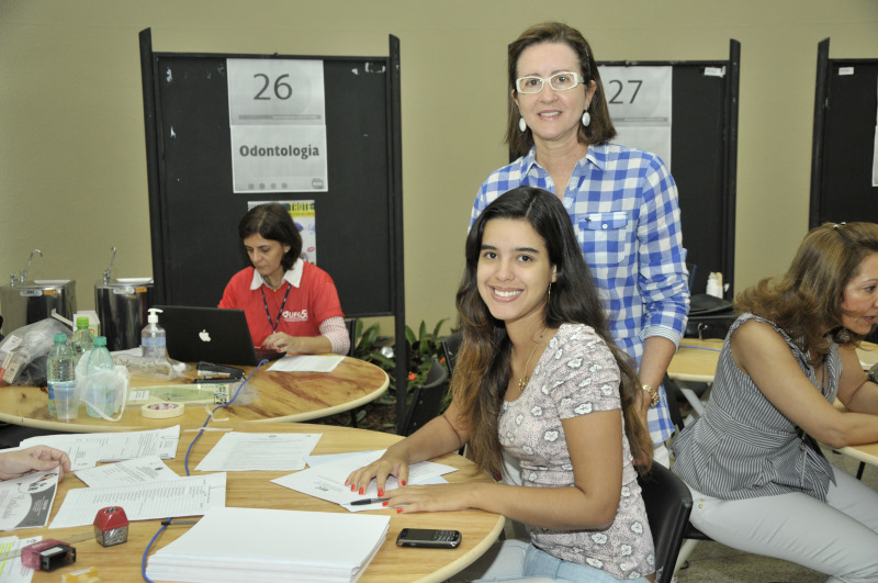 A professora da Faculdade de Odontologia, Lílian Guedes Amorim compareceu no Centro de Eventos, mas não para trabalhar na matrícula. Ela estava acompanhando a filha Jordana Guedes Mendonça, 18 anos que efetuava a matrícula para o curso de Odontologia. Para Lílian Guedes foi uma satisfação a escolha da filha. A caloura Jordana Guedes lembrou que “tinha na verdade uma dúvida entre Odontologia e Direito e agora vejo que tudo valeu a pena e estou animada para começar o curso”. Ela ainda disse que a escolha pelo curso levantou um certo receio por parte de sua mãe. “Primeiro ela ficou preocupada se não estava me influenciando demais porque essa é uma decisão muito importante. Depois conversei com ela e expliquei que era uma decisão minha. Senti que ela ficou muito feliz porque alguém vai dar continuidade na carreira dela”, disse Jordana. A professora Lílian Guedes ainda concluiu: “Por ela acompanhar o meu trabalho tanto na faculdade quanto no consultório isso acaba influenciando, mas em momento nenhum houve pressão. Ela me acompanhou dentro do consultório e também em aulas na faculdade. Eu acho que ela viu que tinha perfil e as habilidades necessárias para exercer a profissão”.