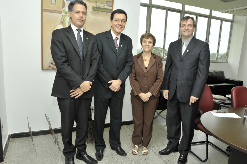 O magnífico reitor da Universidade Federal de Goiás, Edward Madureira Brasil, recebeu hoje, 18 de março, pela manhã, a visita da recém-eleita ministra do Tribunal Superior do Trabalho (TST), Delaíde Alves Miranda Arantes. Eles se reuniram na companhia do vice-reitor da universidade, Eriberto Francisco Bevilaqua Marin e da pró-reitora de graduação, Sandramara Matias Chaves.