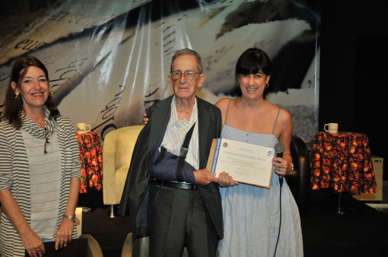 Originário do interior de São Paulo, o escritor Bariani Ortêncio foi convidado a vir ao palco, juntamente com o professor Jadir de Morais Pessoa, responsável pelas reedições da obra Sertão sem fim. “Estou surpreso. Nunca pensei que um livro meu fosse ser tão bem ilustrado e respeitado. Não há nada melhor que ter a nossa obra reconhecida”, declarou o escritor, com bom humor e humildade, a respeito do relançamento de sua obra e do trabalho de ilustração feito por Kátia Jacarandá.