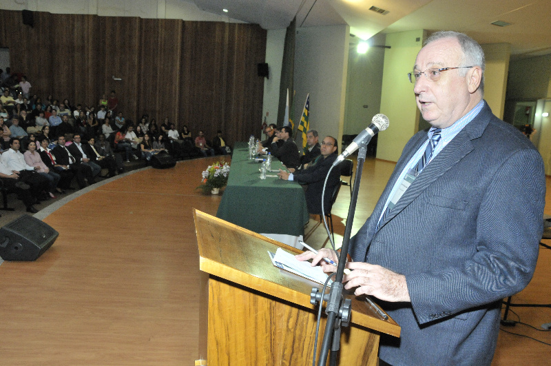 O Secretário Geral da SBPC, Aldo Malavasi, representando a presidente da entidade, Helena Nader, relatou o seu contentamento por verificar a quantidade de inscritos nesta reunião regional e que esta é a oportunidade destes participantes interagirem com professores de fora da UFG, o que representa uma maneira de divulgar a ciência que é feita no Brasil.