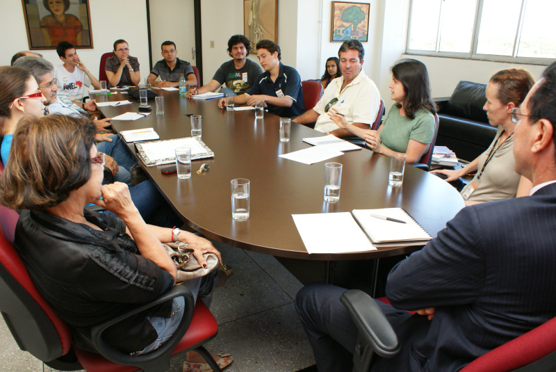 Membros da diretoria técnica e da gerência de planejamento de transportes da Companhia Municipal de Transporte Coletivo (CMTC) se reuniram com o reitor da UFG, Edward Madureira Brasil, na tarde desta quinta-feira (12/05), para discutir os problemas referentes ao transporte público que afetam a UFG. Servidores da instituição e estudantes membros do Diretório Central dos Estudantes (DCE) também participaram da reunião.
