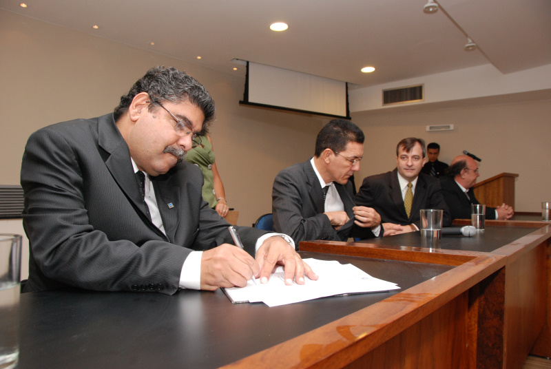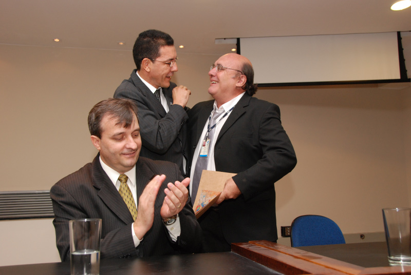 O vice-diretor Orlando Ferreira Gomes com o reitor Edward Madureira e o vice-reitor Eriberto Bevilaqua